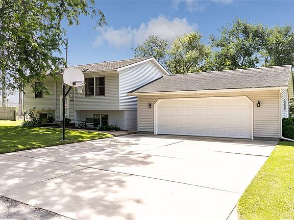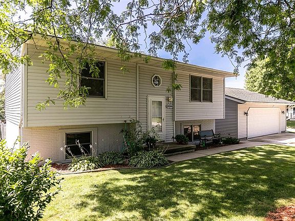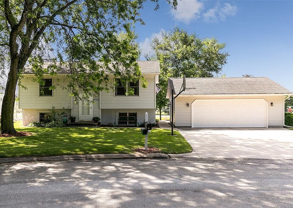 Very well maintained split foyer with large 26 x 26 garage and huge patio. This house has been lovingly kept up. Nice sized living room and large eat in kitchen. Kitchen leads out to a nice sized deck and partially fenced yard. The master has a door to the bathroom. Two bedrooms upstairs and two below. Another bathroom/laundry combo in basement. Great sized rec room with a TV area and either office or gaming area. Great corner lot with a huge patio and fire pit off the back. Fence in the entire property and have a huge back yard. Mature tree lined yard, lots of landscaping. Roof is metal All appliances stay but not warranted. Washer and dryer will stay Across from Golf Course so great views 30 minutes from Iowa City and 25 to Cedar Rapids This is a great house waiting in beautiful Mt Vernon