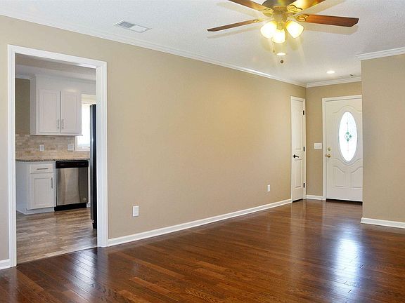 - Living Room: Fireplace, Floors-Hardwood, Molding, Ceiling Fan, Recessed Lights