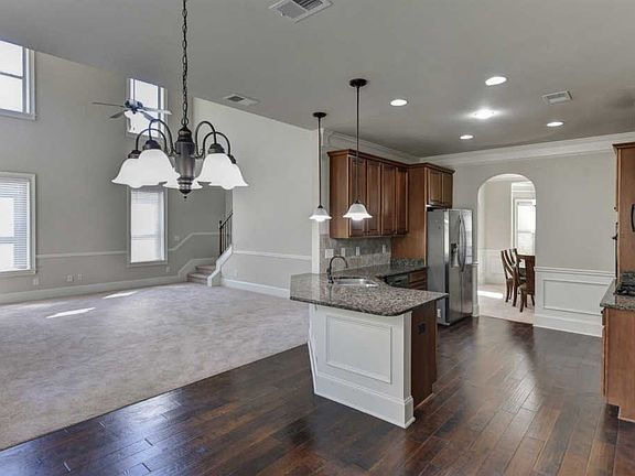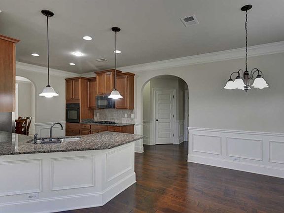 - RoomKitchenFeatures: Granite Counters, Pantry, Recessed Lighting, Eat-in Kitchen, Floors-Hardwood, Cabinets-Stained, Bar, Backsplash-Tiled