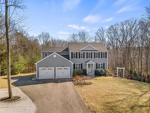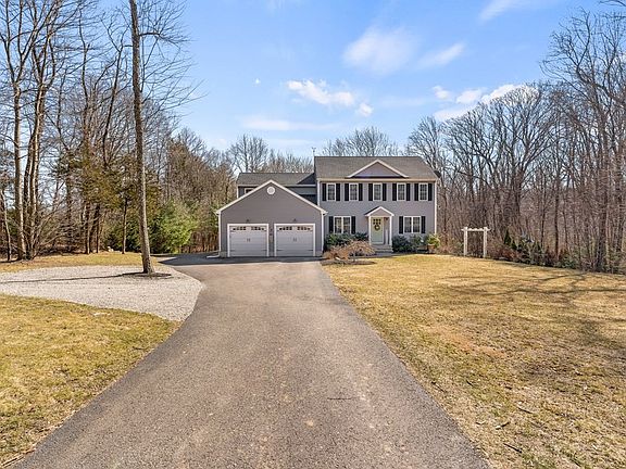 OFFER DEADLINE 4/3 5:00 PM You will find this impressive colonial sitting proudly upon almost 4 private, beautiful acres! Relax & enjoy peaceful nights out on your back deck or entertain by the firepit. Discover a charming beaver pond, lovely walkways & a lean-to built w/ love by the current family. Enjoy some extra additions that the sellers will leave for you such as a fantastic shed & a treehouse! Inside, you will enjoy a masterfully flowing floorplan! This open concept kitchen, dining area (featuring wainscotting) & a living room w/ a cozy fireplace are what dreams are made of! A stunning kitchen w/ stainless appliances, a granite topped island/counters & a farm sink overlooking your back yard oasis is perfect for those who love to entertain! This main floor also features a laundry room, a half bath & an office. Upstairs you will find 3 nicely sized bedrooms, a full bath & a huge primary ensuite w/ walk in closet! BONUS- a great finished basement area adds the extra space you need!