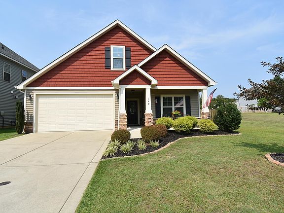 This beautiful 4 bdrm home has an amazing floorplan with primary downstairs along with 2nd bed/office on main floor with attached full bath. Chair rail throughout entrance, granite countertops, ss appliances, tile backsplash with open concept to dining and living room. Beautiful neutral colors. LVP in main living down and carpet replaced in primary 2021. Loft area perfect to set up computer stations. Beautiful fenced in yard. Lot to right of home will not be built on, which helps this yard to feel even more spacious and gives more privacy when outside. Roof replaced 2019