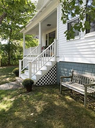 Classic large New Englander. Main house has 3 bedrooms, 1.5 new baths, new kitchen, hardwood floors first and second floor. New Gas FHW furnace, new Rhanni hot water on demand (gas), gas dryer and Jenneair cook top. 28 x 38 Barn, heated with half bath. Second floor finished, heated with 3/4 bath. plenty of space for 4 + cars etc. plus a single one car garage. Repainted inside and outside, newer windows, front covered porch.. on corner lot .26. Easy walk to town also....