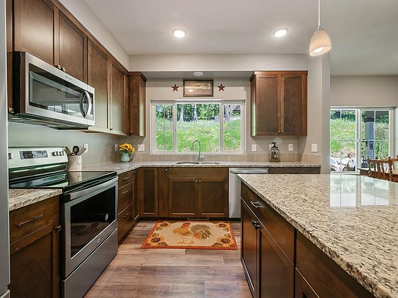 3 Bedroom 2 Bath single level home with an additional office or den on acreage. Super High Speed Internet available from Mountain Link. This home includes an open concept floor plan for entertaining. Living room has a pellet stove for winter ambiance. Kitchen has granite counters, stainless appliances and an Island with seating. Master Bedroom Ensuite with walk-in closet, double sinks, soaking tub and walk-in shower. Fully landscaped with sprinkler system to keep your lawn green. Surrounded by your own forest for total privacy. Backs up to 9 acres of community trail property Plus an additional trail | picnic spot along Moore Creek. Rural gated community of beautiful homes just 15 minutes to Sandpoint. Energy efficient Quality built home, complete with Triple Pane windows, heat pump and AC. Heated 2 car attached garage as well as a 10 x12 storage shed for extras. Plenty of room for a shop. Limited CC&R's that allow for horses, chicken and ducks and room for a garden. MOVE IN READY home in PERFECT CONDITION