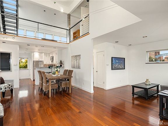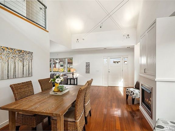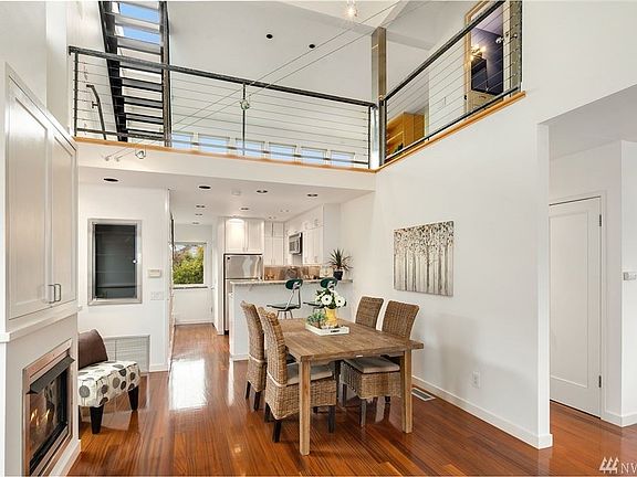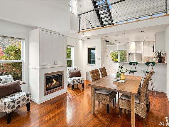 Location, Greenwood (Walk Score 93!) Completely remodeled interior (2000). Private roof top deck w/ views of the Cascade & Olympic Mtns. Plenty of off-street parking. The open-concept home is great for entertaining. Beautiful African hardwood floors, each room is wired for sound/built-in electronics cabinet. The kitchen has stainless steel appliances (gas stove). There are 2 gas fireplaces & forced air furnace. Walk to great restaurants, library, new parks & stores in Phinney Ridge.