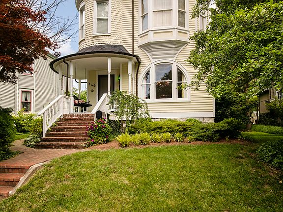 Location--very close to restaurants, shops, and bars! Character and charm that is unmatched! One of a kind home--read all the features below. If you have ever dreamed of owning a home with lots of history and character this could be the one. From it's stately victorian appearance; to the fine details inside, this home has coveted features that have been lost in todays architecture. As you walk up the brick paved sidewalk you will notice all the character showcased in the window trim, ornamental spindles, covered round shaped porch, and the victorian tower with gingerbread wood siding. This home has spectacular landscaping and was featured on the Garden Tour in 2010. You will enter inside to find attractive paint colors, tall baseboards reminiscent of its era of design, elaborate dental moldings, transom style windows, wood floors and many other details. The formal dining area with built-in bookcases and ornamental fireplace opens into the living room with plenty of space for seating and entertaining. The eat-in kitchen off of the living room floods with natural light, tall ceilings, farmhouse sink, stainless gas range, and built-in dishwasher. There is a half bathroom, full laundry room with lots of extra storage, and large closet on the first floor. Outside the kitchen to the covered deck is a meticulously maintained garden area with herringbone patio pavers. The yard is a nice size and there is second entrance and additional parking for up to 7 cars to the right of the iron gate. If you like gardening the raised garden beds will remain with the home. The two car garage is functional and is currently used for parking and storage. Back inside and up the stairs long hallways access two bedrooms. The master bedroom has octagonal window shapes, a decorative fireplace covering, extensive trim, and a large sitting area or office space adjoining. The extra large master bathroom is en-suite to the bedroom and has double vanities, a walk-in shower, decorative fireplace covering, a water room with separate sink, and floor to ceiling closet space. The second bedroom has a balcony with second entry access. This home was a duplex years ago and could still easily serve as INCOME POTENTIAL if you don't mind sharing a little space. There is a full bathroom with tub on the second floor. The third floor of this home has a legal 3rd bedroom with narrow steps that lead to the upstairs. This room could serve many purposes. This home is advertised as a two bedroom because it functions better as a two bedroom home. The basement/cellar area is clean and accessible; currently used to house the components of the home and additional storage. Call for a private tour!