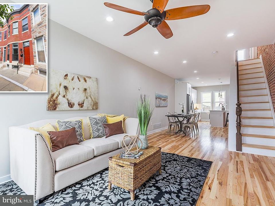 EXCEPTIONAL TAX CREDIT RENOVATION W/ APPROX 2,000 SQ. F.T OF LIVING SPACE & PARKING! Open floor plan w/ hw floors & exposed brick throughout, designer island kit w/ granite counters, ss appliances, & tile backsplash, Master suite w/ full bath & 2nd bedroom w/ WIC & hall bath, fin basement w/ family room, 3rd bedroom, & full bath, & rear parking pad! Located steps from Patterson Park! CHAP PENDING!