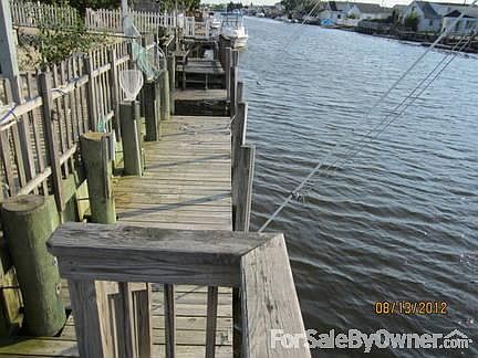 UPDATE: This house survived hurricane Sandy with no significant damage. (just some flexible ductwork under the house got wet and it has been replaced). As a result of Sandy, we decided it rent the house to a local displaced family. House is still avaiable for sale but cannot be occupied until 11/30/13.Built in 1988. Elevated on 21 pilings just enough to get inexpensive flood insurance ($400/yr.).New stamped concrete in 2006 ($24K). New 10x24 vinyl sided garage in 2006 ($5K). New Roof with skylights in 2008 with 50 year shingles ($6k). New a/c outdoor unit in 2011 ($2K). New gas stove (2012).50' x 100' lot. Pressure treated bulkhead in good shape with fixed and floating dock (floating dock new in 2003) ($3K).House is freshly painted and in move in condition. Bring your boats and jetskis and enjoy this nearly maintenance free waterfront home. 10 minutes or so to the bay.2011 taxes $4400Additional property info: http://www.forsalebyowner.com/listing/3-bed-Single-Family-home-for-sale-by-owner-149-N-Spinnaker-Dr-08087/23921458?provider_id=28079