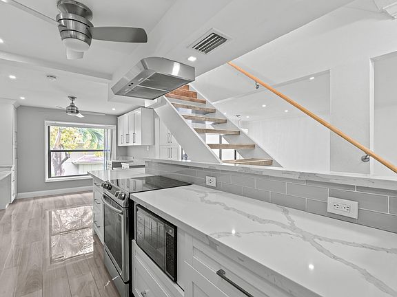Beautifully updated 2-story condo in East Boca. The location couldn't be better just minutes from the beach, shops, restaurants, Downtown Delray, Mizner Park, and the Brightline station for easy travel. Inside, you'll find a modern, open kitchen with quartz countertops, stainless steel appliances, and white cabinets. Convenient built-in desks for a home office or study space. The living space feels light and airy, with a sunroom that offers additional entertaining space or a cozy spot to unwind. Both bedrooms are spacious, and the bathrooms have been stylishly updated with frameless glass showers. You'll also enjoy views of the pool and garden. The community offers great amenities a pool and tennis courts. Water and basic cable are included with HOA