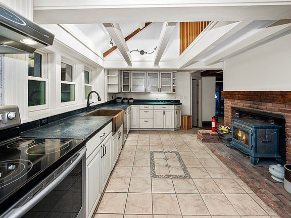 - Features: Wood / Coal / Pellet Stove, Beamed Ceilings, Flooring - Stone/Ceramic Tile, Stainless Steel Appliances, Half Vaulted Ceiling(s)