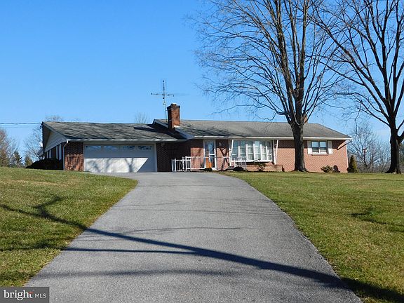 Sitting beautifully up a gentle slope is the well-built brick ranch home situated on almost 2.5 acres in the Oley Valley. The all brick ranch includes custom oak cabinetry, pantry, built-in island with breakfast bar and all the appliances. An adjacent dining area has a great view of the wildlife in the rear yard. The living room includes a corner cupboard, carpet, with hardwood floors underneath. The full bath has been upgraded with Corian countertops and tile floor. Three bedrooms round out the upper level. The mostly finished basement includes a brick fireplace, full bath, laundry room, built in closets, including a cedar closet. A workshop area, bilco door and oil stove complete the basement. The exterior includes a covered cement patio in the rear, a detached 24 x 16 brick garage, and a 20 x 12 shed. Central air, a whole house fan and walk up attic complete this great property.
