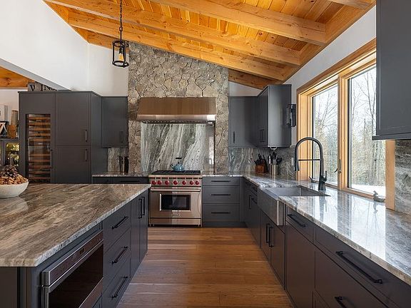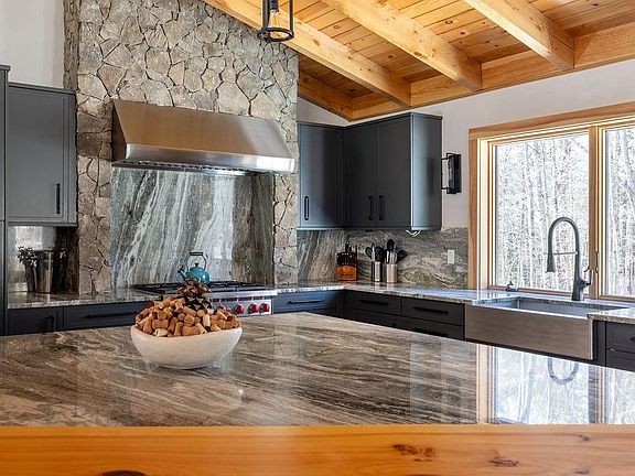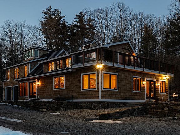 Constructed in 2021, this custom post and beam home is offered for the first time. White oak floors, marble counters, exposed beams and vaulted ceilings paired with modern architectural features lend to a sophisticated and welcoming interior. This home was created with a focus on comfort, quality, and attention to detail, with space for everyone to enjoy. The main level features an open floor plan connecting the living, kitchen, and dining areas. The rooms are anchored by captivating focal points, such as the stone hearth crafted from the original stone of the sugar house that once stood on the property. This level also includes a sunroom that opens to the outdoor patio, first-floor bedroom, large mudroom and laundry area. Upstairs, the primary bedroom takes center stage with sliding glass doors opening to the spacious balcony looking out toward the pond. A guest suite complete with a bedroom, family room, bathroom and kitchenette offers a relaxing retreat. Completing the second floor are a second bathroom, a walk-through primary closet, and a private deck looking toward the backyard. For those in search of true serenity, a spiral staircase leads from the guest suite to the cupola, from here you can take in the natural surroundings of the peaceful landscape. Located off a quite country road just a short walk from the top of South Peak at Mount Sunapee Ski Resort! Open House 3/16/24 from 12:00 - 2:00.