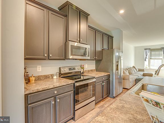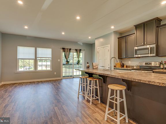 3 Bedrooms on top floor. 1 bedroom in the finished basement. Entry to main level living area and spacious kitchen with large center island and connected dining area with enough space for a grad dining table. New flooring through the main and lower levels. Top floor primary bedroom on the back of the home with bathroom, walk-in closet and tray ceiling. Hall bath and 2 bedrooms complete the top floor. Walk out basement to the backyard. Community property is directly behind the house for an open view. Very spacious kitchen and dining area. Driveway parking with additional parking lot. Great commuter spot with access to I-81 and very close shopping,