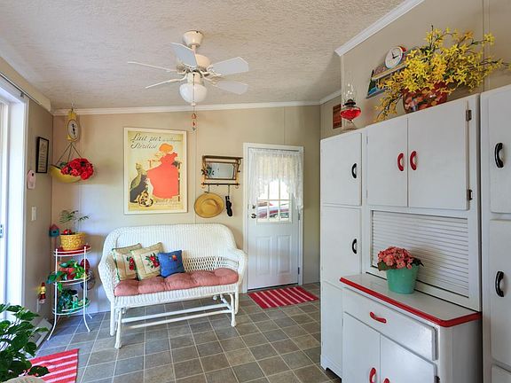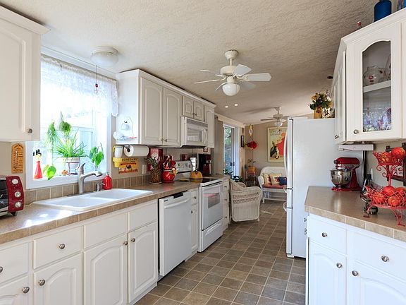 - Kitchen Cabinets/Counters: Formica Counter, White Cabinets