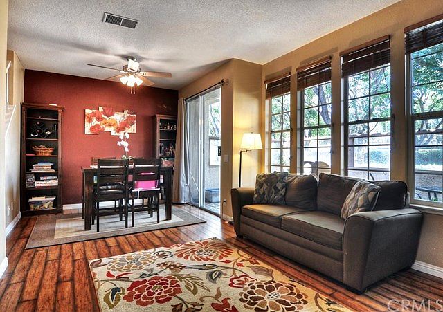 Charming Serabrisa condo located in Rancho Santa Margarita. This 2 bedroom, 2.5 bath, features a loft, an attached garage, a patio and a parking space. A cozy fireplace in the living room, ceiling fans, recessed lighting, and upgraded kitchen and baths. The kitchen boasts Silestone counters, new garbage disposal, and stainless appliances. Enjoy a community pool and spa, award winning schools, shopping, parks and freeway access.