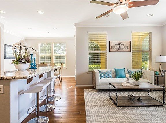 LOCATION, LOCATION!! Rare opportunity to own a beautiful END UNIT townhome next to a large OPEN GREENBELT. Enter through the formal foyer and you will be greeted by a LARGE and OPEN GREAT ROOM with high ceilings, recessed lighting, and large windows overlooking the lush trees and greenbelt. The Gourmet Kitchen features upgraded Caesar Stone countertops, stainless steel appliances, large kitchen island, and upgraded dark wood shaker cabinets. Escape upstairs to find brand new carpeting and 3 SPACIOUS bedrooms. Well appointed MASTER SUITE is complete with plenty of space for a king bed, LARGE WALK-IN CLOSET, and OUTDOOR BALCONY. Master bath features DUAL UPGRADED VANITIES, SOAKING TUB, and separate shower. There are 2 additional bedrooms at the opposite end which share an upgraded bathroom. Separate laundry area is conveniently located upstairs - all appliances included! Entertain on the OUTDOOR PATIO overlooking the large grass green belt. Oversized 2-car direct garage access and plenty of guest parking out front. Premium end unit is located across the street from Portola Springs Elementary and the community park. Walking distance to private clubhouse, olympic-size lap pool, and basketball courts. Zoned for award-winning Irvine Unified schools. Close to Woodbury Shopping Center which includes many dining options, Trader Joes, Home Depot, and much more! Hurry, this home will go fast!