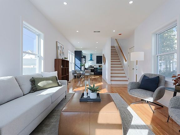 BRAND NEW CONSTRUCTION! This modern farmhouse blends timeless charm with modern design. The great room features high ceilings and LED recessed lighting, creating a bright, open space for everyday living. A dining area leads to the chef’s kitchen, beautifully appointed with stainless steel appliances and gas cooking. Adjoining the kitchen, you’ll find an oversized bonus room with a rear entrance and a full marble bathroom, offering a flexible space for a family room or guest suite. Upstairs, a spacious landing area at the top of the stairs makes a perfect reading nook or home office. Next, the primary bedroom is filled with natural light from three exposures. Two additional bedrooms are at the opposite end of the house. A second full bath with marble tile, a closet with a washer and electric dryer hookup, and a linen closet complete the upper level. The finished basement with tile flooring provides plenty of storage. Welcome home!