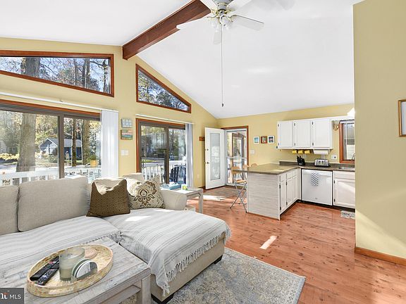 Here's an opportunity to own a fully furnished, turn-key beach home in Ocean Pines that is in MOVE IN READY condition. That means everything from furniture to furnishings is included and what you see is what you'll own. This contemporary style rancher offers one story living at its finest with an open concept floor plan and wooden beams on the vaulted ceilings for architectural interest. The great room is super inviting with an appealing color palette, cathedral ceilings, a ceiling fan, two sliding glass doors and transom windows bringing in amazing light, and a comfy sectional sofa that conveys along with the other furniture. The cabinets and appliances in the kitchen are white and there is a breakfast bar in this well-appointed kitchen. Most of the flooring throughout the home is laminate with a rustic charm and there are newer carpets in the bedrooms. There are three bedrooms and two full bathrooms along with the laundry area, great room, kitchen, screened porch and deck. Enjoy transitioning from the inside to outdoor spaces with a fabulous, screened porch just off the kitchen and a spacious deck from the great room. The outdoor shed offers a workbench and electricity and is fully loaded with toys for all your summer fun activities that are included with this property. An outdoor shower, partial fencing and several gates were recently added to this home. Enjoy evening conversations with friends around the fire pit on the Adirondack chairs or lounge on the hammock for some relaxation. This home is located on a quiet street within walking distance to Bainbridge Park. The Seller is providing a one-year full coverage Home Warranty. The amenities in Ocean Pines are unprecedented and include a beachfront restaurant in Ocean City, a public Yacht Club in Ocean Pines, five pools, two marinas, a premier racquet sports complex, and a Robert Trent Jones Sr. designed championship golf course. Add this cute home to your must-see list and make it yours today. You can move right in because EVERYTHING is here for your pleasure and comfort.