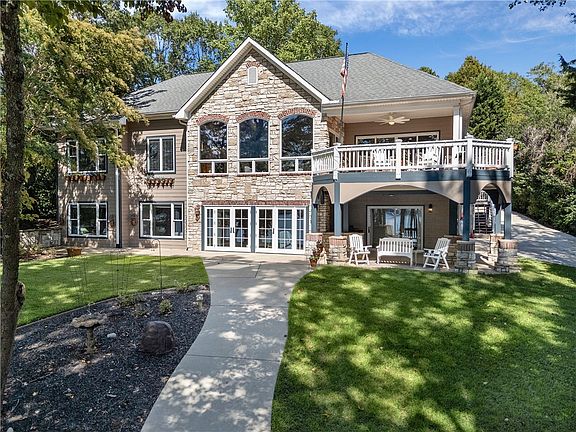 The great room features vaulted ceilings, a stone fireplace with custom mantel and corbels framed by built-in cabinetry. There is a formal dining room and an open chef’s kitchen with a generous breakfast area. There is plenty of space to cook and entertain friends and family. Stainless steel appliances including a brand new 6-burner gas range with two electric ovens, granite counter tops and under counter lighting. You may choose to enjoy your favorite beverage on the partially covered tiled porch area. The owner’s suite includes a sitting area, jetted tub and separate shower with dual sinks and custom closet. There is also a mudroom and laundry and easy access to the upper level ensuite bedroom. The main-level garage is a generous 28’x 28’ with epoxy flooring and abundant cabinetry.