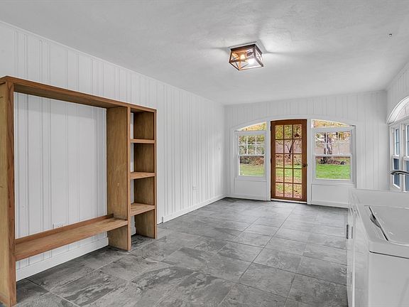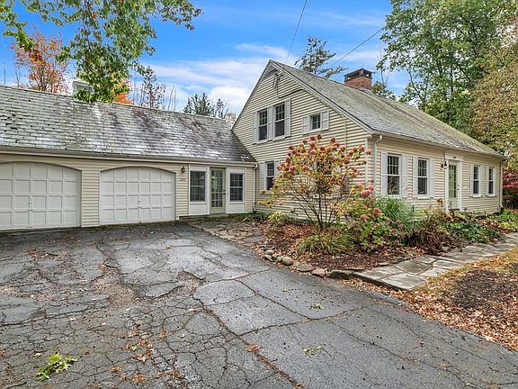 Welcome to comfortable modern living in traditional classic style. Step into the sunroom with a laundry/sink combo and rear yard access, connected to a two-car garage sporting attic storage. Enter the updated kitchen with marble counters and expansive cabinet space. Newer appliances and bright open island space lend to family gatherings and comfortable daily living. South facing, the light brightens and warms the backyard patio overlooking the generous yard and garden viewed from the spacious living room’s grand window beside the stately fireplace. Nearby, the sliding barn doors enclose the office or additional private retreat. A walk-in shower and a highly sought-after first-floor bedroom provide accessibility. Built-ins and traditional iron hardware can be found upstairs, where the spacious master bedroom, with duel closets and a second fireplace, awaits. Another bedroom also offers divided space for two, all serviced by a tiled bathroom. Finished basement, outside shower!