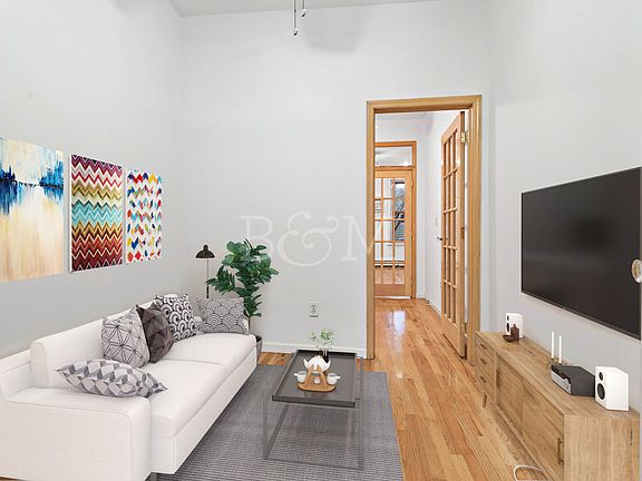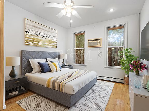 Welcome to this no-fee 1-bedroom with a Home Office. This home generously offers four rooms: a King-Size Bedroom, a Living Room, a Home Office, and an Eat-in Kitchen. You'll love these 10' high ceilings and large windows, French doors and hardwood floors, as well as ceiling fans in all four rooms. This dream location offers: a quiet, tree-lined street ideally suited for peaceful living and, at the same time, vibrant Graham Ave around the corner, offering some of the best restaurants in Prime Williamsburg. You'll find here multiple specialty shops and different services for your convenience. McCarren Park and Cooper Park are a short distance away! 3 blocks to Graham Av L-train and close to the G-train (Metropolitan Av). A 1,5-year lease is available. Pets accepted on a case-by-case basis.