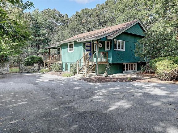 This Mid-Century Contemporary Bungalow sits on a private wooded 1.1 acre lot behind privacy trees and stone walls. Painted to blend with its natural surroundings it draws you in and welcomes you home! This home features an updated kitchen, maple hardwoods throughout, replacement windows, freshly painted exterior, two tiered deck and and expansive private yard. The first level provides open concept living with cathedral ceilings, dining room, full bath with shower stall & laundry area, and a large stone fireplace living room that walks out to the expansive deck overlooking the secluded back yard. The lower level has a large Master bedroom with a full bath accessed from the bedroom and the common hall. The remaining two rooms provide more bedroom space or a bedroom and a large office or den easily accessible to that second bedroom. This is a very peaceful home in a tranquil setting all within minutes to highway access in many directions. A perfect commuter location.