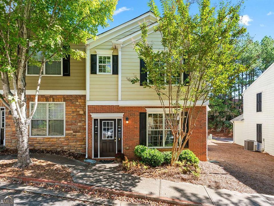 Welcome to this beautifully maintained end-unit townhome offering comfort, convenience, and charm in the heart of Canton. This 3-bedroom, 2.5-bath home features only one shared wall, providing added privacy. Step inside to a bright, open-concept main level that boasts gleaming hardwood floors and abundant natural light. The spacious family room flows seamlessly into a tiled dining area and well-appointed kitchen featuring warm wood cabinetry, stainless steel appliances, a breakfast bar, pantry, and a clear view into the living space-perfect for entertaining or everyday living. All appliances are included - including the refrigerator, washer and dryer! Just off the kitchen, a private patio offers a cozy spot to unwind or host guests. The main level also includes a convenient half bath and access to the rear-entry garage. Upstairs, the generous primary suite features a large walk-in closet and an en suite bath with double vanity sinks and a shower/tub combo. Two additional bedrooms offer ample space and share a second full bath with a clean, modern white vanity and shower-tub combo. A full-size laundry room is also located upstairs for added ease. Enjoy the benefits of a flat driveway, a small but usable yard, and a low-maintenance lifestyle with HOA fees covering termite services, exterior maintenance, and lawn care. The community itself offers sidewalks for morning walks or evening strolls, as well as a neighborhood pool. Tucked away in a quiet, tree-lined enclave, this home is just minutes from shopping, dining, and the vibrant events at The Mill on Etowah, Downtown Canton, and Etowah River Park. A perfect blend of privacy, location, and low-maintenance living-this home truly has it all.
