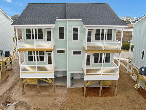 Looking for a home with endless water views out of every window only a short walk to the beach? This home has that and then some. With kitchen and great room living on the top floor, an elevator to make three story living easier, porches hanging out over the marsh, this home has it all. This brand new half duplex located near the Surf City Bridge on Topsail Sound is the ultimate beach house getaway. Close walk to the beach but removed completely from the hubbub of the island. Sit on one of your three balconies to enjoy the ocean breezes, whether you're bird watching, relaxing or catching the sunset after a day at the beach. There are only a few left, so grab yours before it's gone. Each of the three bedrooms has its own bath and a luxurious owner's suite on the sound with large tile shower, quartz countertops in kitchen and in all bathrooms, walk in closets and laundry room. Outdoor shower and extra storage unit down below. Neighborhood amenities include pool and clubhouse. No short term rentals makes this a unique neighborhood at the beach.