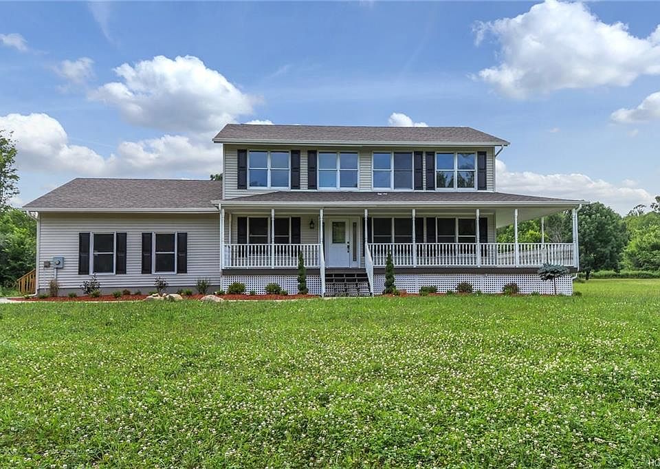 "Like NEW" for LESS! Renovations are complete and this country colonial is waiting for you - rather than YOU waiting for new construction in the Minisink school district. Wrap around front porch welcomes you and leads you inside where you will find all new hardwood floors throughout the entire home. Open kitchen is sure to impress with granite countertop, stainless steel appliances and beautiful ivory cabinets finished with crown molding. Convenient mud room and laundry area off two car garage is an added bonus! Master suite boasts walk in closet with pocket doors and modern tiled bath. The list of improvements is endless with new roof, driveway, heating system, central air, all new bathrooms, deck, exterior and interior doors and more! Plenty of room to roam with large, level yard and home is set back off the road for peace and privacy on two acres. Low taxes and an ideal location just minutes from schools and a short drive to train and bus to NYC, shopping and major highways.