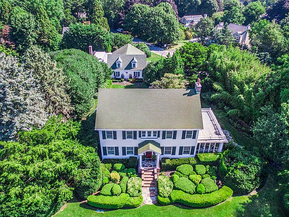 Stately elegance and classic charm define this historic real estate offering. Wonderfully private, this magnificent home was constructed circa 1918 and has only housed three families since that time. The interior, exterior and grounds of this John Adams Center Hall colonial have been lovingly restored to reflect the original beauty enhanced by modern convenience. Nestled on a very private, almost two-acre lot, gorgeous gardens and a koi pond, reminiscent of when the property housed a nursery, adorn the grounds. Inside, exquisite original details include push button lights, original picture molding, oak and mahogany flooring with inlay, solid mahogany interior doors with crystal knobs and so much more. Enter into the welcoming foyer with dramatic staircase. To the left an inviting formal living room with cozy fireplace is sure to impress. Double sets of French doors lead out to a delightful screened in porch with slate floor. Sit with guests and take in gorgeous views of the surrounding gardens. Right off the kitchen, the elegant formal dining room, is Ideal for hosting a large party or intimate get-together. Meal preparation is a dream in the thoughtfully laid out kitchen which showcases premium appliances (including a 6 burner Thermador gas stove, Sub-Zero refrigerator, and Viking dishwasher) and a stylish design, while still maintaining the original integrity of the room. This space gracefully flows into a sunny dining area looking out to the yard and gardens. Step outside into your very own retreat. Take a dip in the diamond coated, in-ground swimming pool or sunbathe on the stunning patio where tall hedges maintain privacy. Just beyond, find a lovely guest/pool house and fully functional Burnham greenhouse. Enjoy a restful night’s sleep in any of the four comfortable bedrooms including the luxurious master with wonderful private deck. Also find a fully finished third floor and finished basement both with heating and plumbing. Other features of note include a four car garage, full security system, upgraded heating system, and steel beam construction.