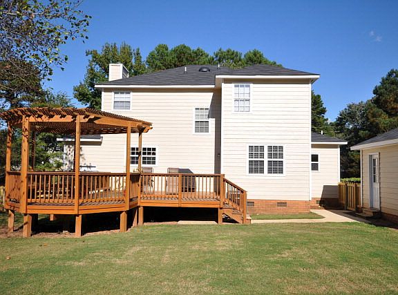 Roof was replaced in 2012. Porch was remodeled in 2011 Deck was replaced and enlarged in 2011 Central heat/air unit was replaced in 2010 Water heater replaced in 2004 Kitchen cabinets and counters have been updated. New counters are granite with deep sinks and new faucet. kitchen and laundry room floors are hardwood Living room floor is hardwood Detached garage has built in custom storage cabinets and shop space. 1 single parking pad next to house and a 2 car parking pads in front of the garage. 130 Sq. Ft. storage Shed to remain. Shed has electrical power. Garage Spot lights illuminate parking pad and back yard. House has been painted inside and out. Kitchen has new appliances Carpet replaced August 2013. Master bath is tile with spa tub and separate walk-in shower. Kids have separate shower/bath. Exterior access to yard tool storage closet where hot water heater is located. 40 X 70 Ft. garden plot with strawberry and blueberry bushes. Yard has mature trees and hedges. Crape Myrtle trees line side and back of yard. Home is wired for cable and has security system. Siding has been updated with Hardie board. Neighborhood Description Neighbors are friendly and helpful. We have an informal neighbor watch program that helps watch over properties in area. Easy access to schools, churches, grocery stores, shopping, restaurants, and interstate. Homes and yards are neat and well maintained.