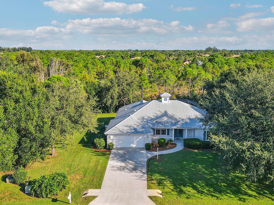 Privacy! Serenity Found on This Half-Acre+ Lot! Designed for laid-back coastal living with real peace of mind, this Key West-style CBS home in the hidden enclave of South Fork Estates checks all the boxes. Set on a .59-acre preserve-view lot, the property is wrapped on three sides by mature trees and lush landscaping for exceptional privacy - a rare find in this area.This stunning 3-bedroom, 2-bath pool home with an oversized 2-car garage offers the perfect balance of space, comfort, and tranquility. Step outside to your backyard sanctuary, where a newer (2021) screened, heated saltwater pool with a sunshelf and water feature takes center stage - perfectly positioned for sunshine and surrounded by nature. The expansive covered patio is ideal for entertaining, morning coffee, or quiet evenings listening to the sounds of the preserve.