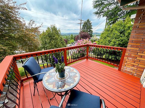 Unique & Immaculate Corner-lot Home! Well-established neighborhood near shops, amenities & parks. 2,418 SF, 3 bdrm + extra finished rm. 2 living spaces w/ full Mother-in-Law Apartment offers excellent rental potential! Main floor overlooks backyard & peek-a-boo-views. Bright, open floor plan w/ hardwood floors, custom doors, detailed wood ceilings & beautiful tiled bathroom. Dining rm leads out to balcony & spacious kitchen leads to landscaped-walkway surrounding the house. Connected staircase, & separate entrances to the bottom floor, leaving open to Air BNB or other possibilities. Large family rm, bdrm + bonus rm, utility room w/ sink, full kitchen, & it's own patio/yard & parking area. Gas fireplaces on each floor. Impressive throughout!