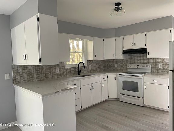 NORTH POCONO SCHOOL DISTRICT RAISED RANCH RENTAL! Renovated and ready for new tenants. This 3 bed /2full bath home features new Kitchen, Baths, paint, and flooring throughout. Attached 2 car garage, finished lower level with walkout slider. Rear deck accessed through slider and large flat lot. 2 pellet stoves for efficient heat source. Convenient location to all things North Pocono and NEPA with quick access to interstates 380, 84, 81.Prior to scheduling showingsLand lord requires rent spree application for all adults. fee $40. 3X rent proof of income.