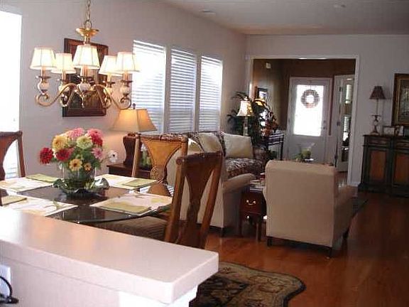 SELLER SAYS "PRICE IT TO SELL" so price is lowered to compete with new construction!! Better than new with all the upgrades and extras already added, so WHY BUILD?? This IMMACULATE Pine Spring floor plan SHOWS LIKE A MODEL...was decorated by an interior designer & professionally landscaped on a prime lot with wooded view. Enter the foyer and notice the GLEAMING HARDWOODS throughout living room, dining room, kitchen, den and hallway. The KITCHEN is A GOURMET DELIGHT & conveniently located at the back of the home next to the sunroom & patio while overlooking the living area ....the perfect plan for entertainment!! You'll love the kitchen upgrades offering CORIAN countertops and all GE PROFILE STAINLESS STEELE APPLIANCES including, Microwave built-in, Gas range/oven, Refrigerator side by side with exterior door filtered water and ice, quiet powered Dishwasher. The DEN WITH FRENCH DOORS is located just off the foyer and could be used as a 3rd bedroom. The Master is spacious with adjoining deluxe master bath with oversized walk in shower, dual sink vanity with tons of cabinet space and walk-in closet. Guest bedroom is carpeted like the master and the guest bath is closely situated in the hallway. The garage is as immaculate as the home, with epoxy flooring and added shelving for storage. Other features include security system, programmable irrigation system, radiant barrier roof overlay for added insulation, and the windows have sun filters and 2" faux blinds. Del Webb offers an ideal retirement lifestyle......a gated community for >55 age group, there is something for everyone one....you can be as actively involved as you choose to be. The activity center is a recreation and social hub, complete with a fully equipped workout center, aerobic studio, heated indoor pool, hot tub and large outdoor pool & patio in season. Active seniors also enjoy the bocce ball and tennis courts or fishing in the numerous stocked lagoons. If you're not an outdoor buff, there are numerous clubs, classes and activities that will sure to meet your needs. A new Publix grocery store just opened an the entrance to Cane Bay Plantation and there are many other services and businesses planned for the near future. The area is growing....don't miss the opportunity to see how gorgeous this community and this home truly is. THE DECORATOR FURNITURE AND WASHER/DRYER ARE NEGOTIABLE....DON'T MISS THIS AWESOME SHOWPLACE IN DEL WEBB!