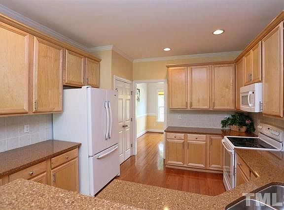WELCOME HOME! Nice quiet neighborhood close to Beaver Creek, 55, 540, 64 in the heart of Apex. Formal Dining Room, Bright Kitchen with maple cabinets and tile backsplash. Gorgeous Hardwood throughout First Floor. Bedroom with full bath on first floor, could be office. Large Master Bedroom with Sitting area. Garden Tub/Separate Tile Shower. Bonus Third Floor, great for media room. Fantastic 3 season room overlooking a nice fenced backyard, backing to private natural area. All appliances included