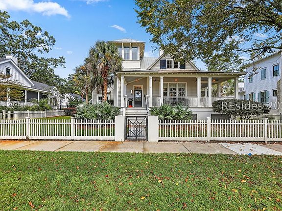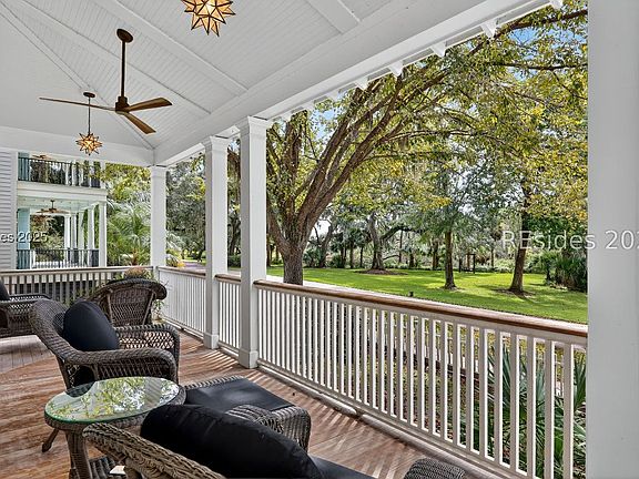 Nestled in the heart of Habersham, where timeless architecture and walkable streets create the spirit of New Urbanism, this stunning 4BR/4.5BA home is more than a residence; it's a lifestyle. From the inviting wraparound front porch to the serene, screened porch and new back deck, every detail reflects the art of Lowcountry living. Inside, a 2025 Dana Bacher custom kitchen renovation takes center stage, designed to the studs with premium finishes for those who love to cook and gather. This kitchen is the honored recipient of the 2025 LightHouse Award, honored by the Hilton Head Area Home Builder Association. Cathedral ceilings, wood floors, and a newly tiled double-sided wood-burning fireplace bring warmth and character, while walls of windows bathe the home in natural light. Two primary suites, one on each floor, offer luxurious retreats, with the main level featuring a spa-like bath with an oversized zero-entry shower, seamless glass surround, soaking tub, dual vanities, and a large walk-in closet. Upstairs, a custom gallery loft and library with built-ins throughout create a cozy escape, while multiple workspaces and a butler's pantry add everyday ease. A private carriage house with its own bedroom and bath extends comfort for guests. Across the street, protected preserve land ensures unobstructed sunsets over Habersham Creek, the marsh, and deep-water views that will never change. Life in Habersham is enriched by its vibrant marketplace of shops and dining, neighborhood pool just a short walk away, and community garden. The River Retreat offers a pavilion, outdoor gathering spaces, and a dock with a kayak launch for endless adventures. Here, every element of design and community blends seamlessly to create a place that feels both timeless and alive. This is not just a home in Habersham, it's an invitation to be part of a story, one where beauty, community, and nature converge.