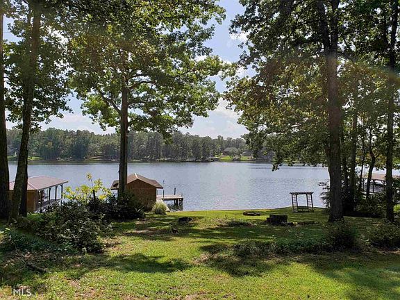 Popular location on Lake Sinclair. Large views on the main lake. 6 feet deep at the end of the dock, 3 BR and 2 Bath, new LVT kitchen flooring, fireplace, sliding glass door to the large deck, Over sized 2 car garage with the 3rd bay converted for an office or storage, paved driveway, level lot, single boat house and max dock. Great vacation or full time home. Sold as is!