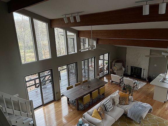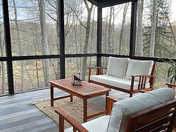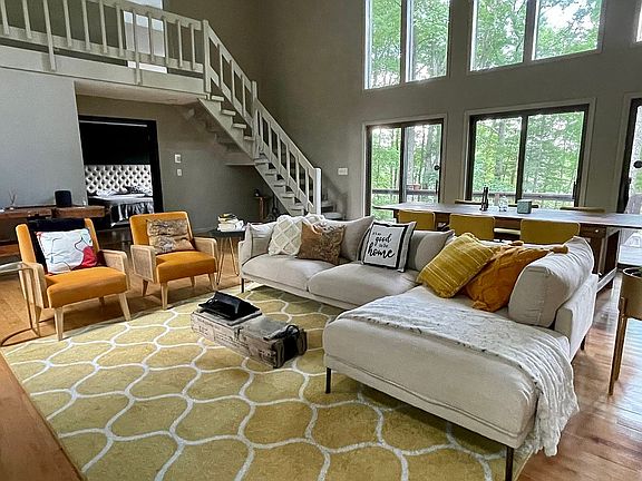 Nestled in the Poconos, the home is a serene, chic, laid back oasis with a wooded backdrop and a private lake. The home is 2 hours from New York City and is conveniently located close the historic cute town of Milford, PA. The living area has a high ceiling with floor to ceiling windows (tonnes of sunlight and a lovely view!). An added bonus is a sunroom that let's you bring the outdoors inside and is a breath of fresh mountain air!