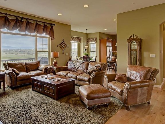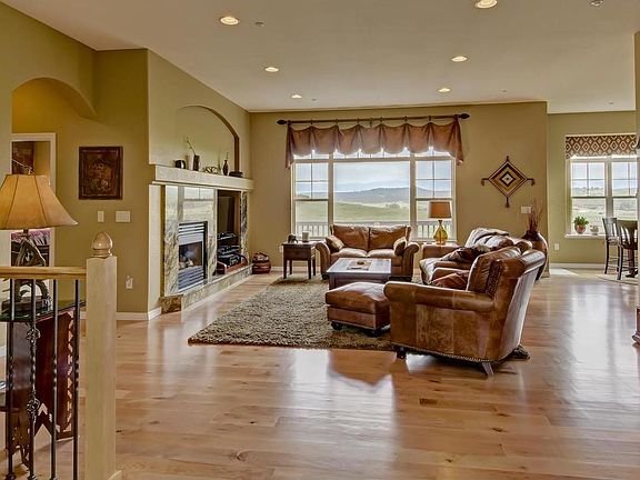 Experience a lifestyle like no other. Surrounded by natural beauty, access to 20 miles of dedicated hiking and equestrian trails and only 4 miles south of Castle Rock, this is home. Upgrades include: new custom paint, maple hardwood flooring, crown molding, exotic granite imported from Brazil, generous kitchen island, butler's pantry, formal dining room, art niches, central vac, walk-in closets, steam shower and more. Situated in a peaceful nook of the neighborhood, this lot is approved for equestrian use and is adjacent to a conservation easement. The flow of the floor plan reflects how we live today with 10 foot ceilings and an open living concept that is truly comfortable. Kick back after a long day and take in the breathtaking views from the low maintenance deck and lower level covered patio. Your ease of lifestyle continues with front, rear and drip irrigation, an abundance of low maintenance perennial plants, 40 trees and professional landscaping.