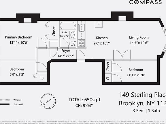 149 Sterling Place Apt 4 is a fantastic 3 bedroom 1 bath in one of the best locations you can ask for in all of Brooklyn. This top floor unit of a Brownstone is where Park Slope and Prospect Heights meet. Living at the canopy of a lovely tree you have lovely views of Sterling Place just off of your living room and second bedroom. The primary bedroom can fit a queen sized bed along with some additional furniture, while the two smaller bedrooms can fit twin sized beds, cribs or desks for working from home. The open concept kitchen/living/dining room has south facing windows, a decorative fireplace and two lovely french doors for the second bedroom (equipped with two closets). The entry of the apartment is in the center and has a hallway that takes you to the bathroom with wonderful skylight, linen/entry closet, and the two other bedrooms; the primary and the third bedroom. Both bedrooms face north and have closets while the primary has a second decorative fire place. Just off of 7th Avenue, you have the B & Q trains right around the corner, the 2,3 trains at either Grand Army Plaza or Bergen Street, while the Atlantic-Barclays subway hub is not too far either. Fantastic restaurants, shops, grocery stores, farmers markets, and gyms abound along 7th Avenue, 5th Avenue, Flatbush Avenue, Vanderbilt Avenue and then some. Plus you have Prospect Park nearby for as your playground. Cats are okay; sorry no dogs. Heat and hot water are included in the rent. Tenant is responsible for cooking gas, electricity and cable/internet. In addition to first month's rent and a security deposit equal to a month, there is a $20 application fee per person to apply for a credit and background check.