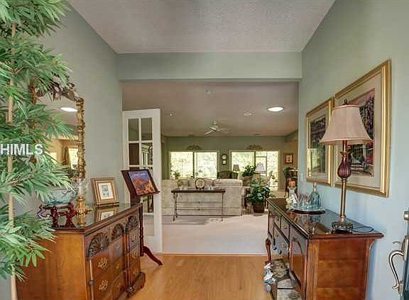 Located on an EYEBROW and .413 acre lot, this light and bright Dogwood has a 23 X 12 screened tiled lanai overlooking a private wooded lot. It features 3 bdrms or 2 bdrm and den w closet and French doors. Decorator front door, corian counters, southern white cabinets, work island in kitchen new disposal, marble shower, elevated vanities, hardwood floors in kitchen and foyer, 2 bay windows, ext garage, new 15 Seer HVAC, techshield radiant barrier in attic, gutters, faux wood blinds, 6 ceiling fans and more. Must see to appreciate. (909112)