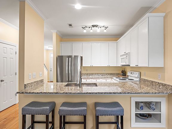 Rare find. Fabulous townhome in Holly Glen. Gracious living both indoors and out. First floor bedroom or is it a study/office? Custom designed kitchen, so many cabinets! open to family room with that perfect corner fireplace. Light pours in onto gleaming hardwood floors. Enjoy your morning coffee on your screened porch overlooking custom private deck and lush greenery. Long day? Enjoy the owner's retreat with spa bath. Beautifully maintained and updated home with incredible storage. Steps to neighborhood pool plus there's tennis and pickleball courts. Short drive to all Holly Springs offers.