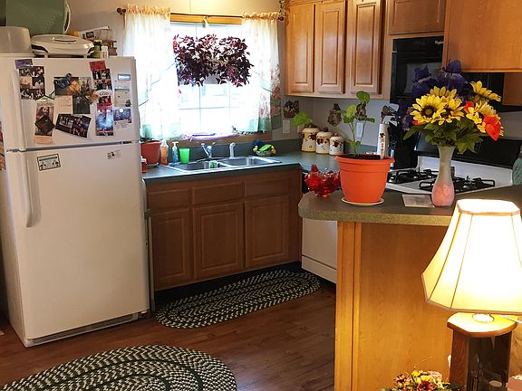 This lovely 2002 Skyline home includes 3 bedrooms, 2 bathrooms, open floor plan, wood kitchen cabinets, kitchen appliance package, dining room, living room, front deck, double driveway, air conditioner, and 8x10 storage shed. This home is located on a corner lot close to the community playground. Inquire about this home today.