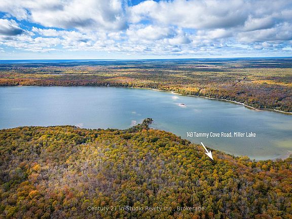 Welcome to your charming retreat on sought-after Tammy's Cove Road, perfectly positioned for enjoying life by beautiful Miller Lake! This delightful year-round home or cottage blends modern comforts with cozy cabin charm, featuring gorgeous pine tongue-and-groove finishes that create a warm, inviting atmosphere. Recent updates include a metal roof, appliances, renovated kitchen, updated flooring, lighting, and select windows & water filtration system, making it move-in ready. Set on a private, forested hillside with seasonal lake views, this property offers exceptional privacy and the perfect setting for ambient campfires under the stars. Just across the road, take advantage of a large municipal waterfront access with approximately 100 ft of shoreline ideal for swimming, kayaking, or relaxing by the water. Plus, with close proximity to a public boat launch, you can easily spend your days out on the lake. The main floor layout is both functional and welcoming, with a walkout deck off the living room where you can soak in the peaceful surroundings & seasonal lake views. A winterized guest bunkie with electric fireplace adds comfortable accommodation for visitors and enhances the property's rental potential. In fact, this home boasts a proven track record of generating strong rental income, making it a fantastic option for both personal use & investment. Located on the family-friendly and highly desirable Tammy's Cove Road, you're also close to some of the Bruce Peninsula's most treasured landmarks, including Tobermory, The Grotto, Smokey Head White Bluffs Provincial Park, Devils Monument, and Dyers Bay. With modern upgrades, water access, forested privacy, and an unbeatable location, this one truly has it all.