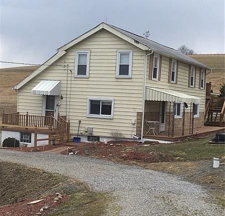 Rent this farm house out in the country for $1,100 a month, sit on the deck off upstairs bedroom and look at the wildlife in the fields. Master bedroom and full bath on the main floor, big kitchen, laundry hook ups in the basement. Security system there if you want to subscribe to it-the biggest plus is FREE GAS! That's right, the gas is free as long as the well holds out and it is newer. Tenant responsible for lawn maintenance. Spacious home that has been well maintained.