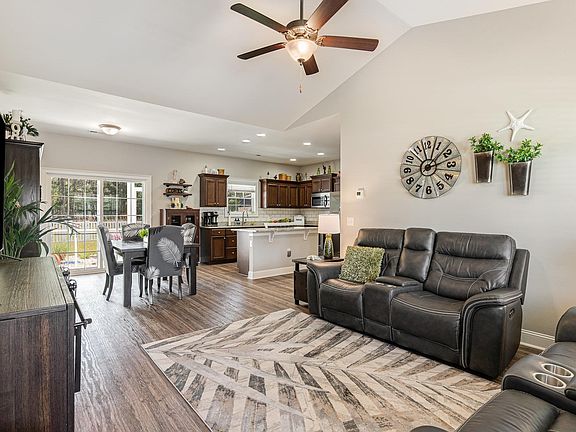 This spacious 4-bedroom home comes FULLY FURNISHED and features a thoughtfully designed and unique layout with an open-concept floorplan. The living area includes a vaulted ceiling in the living room with a ceiling fan, a designated dining space, and a well-appointed kitchen with an abundance of solid wood cabinetry topped with crown molding. Granite countertops, a breakfast bar, and stainless steel appliances—including a side-by-side refrigerator, smooth top range, microwave, and dishwasher—add both style and functionality. The split-bedroom design ensures added privacy, with the primary suite offering a vaulted ceiling, ceiling fan, a spacious walk-in closet, double sinks in a raised-height vanity, a 5-foot walk-in shower with a built-in seat, and a linen closet. The additional bedrooms and full bathroom are located on the opposite side of the home and showcase 9ft ceilings. Durable, waterproof vinyl flooring runs throughout the home, and a blinds package is included for added convenience. The finished and painted 2-car garage includes an automatic door opener and pull-down stairs for attic storage. There is also a ring doorbell for added security and peace of mind. The front loading washer and dryer and barely-used battery lawn mower are included as well. Enjoy outdoor living on the welcoming front porch, as well as a generous 6' x 23' screened rear porch and adjoining patio—perfect for relaxing or entertaining. The yard is beautifully landscaped and sodded, complete with an irrigation system and gutters on both the front and back. Located in a gated community that offers access to a clubhouse and community pool, and just a short drive to the shopping, dining, and sandy shores of North Myrtle Beach. Built by a locally recognized, award-winning builder known for quality and attention to detail. Don't wait - schedule your private tour today!