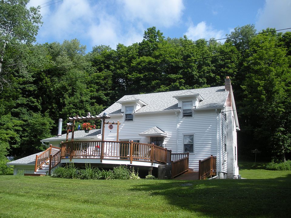 PEACEFUL COUNTRY FARMHOUSE AND BARN ON 3 ACRES IN SCENIC HALCOTT CENTER VALLEY ON DEAD END ROAD. Well maintained 6 BR/2BA house with open concept design on 3 acres. Large cedar wood deck, modern kitchen with granite counters and SS appliances. Southern exposure (perfect for solar panels), HANDICAP ACCESSIBLE. Efficient Rinnai propane heater, WOOD STOVE and baseboard. Attached 850 sq ft garage and a full unfinished basement with wash room. Sunny and wooded property with long road footage and a large barn with hayloft. Miles of snow mobile/hiking trails behind the house and excellent restaurants, music, galleries, skiing, swimming, fishing, tennis are all within a 20 minute drive or less!