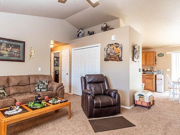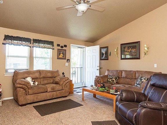 Home sweet Home! Beautifully landscaped front yard adds great curb appeal with very low maintenance. The "Chinook" floor plan offers 1008 sqft and covered front porch. Vaulted ceiling in living room gives a spacious feel, kitchen includes all appliances. Each Bedroom has a walk-in closet and ceiling fan. Both baths have solar tubes for natural lighting. Slider in dining opens to the fenced backyard with patio and everlasting green grass. Lower county taxes makes this home a sweet buy.