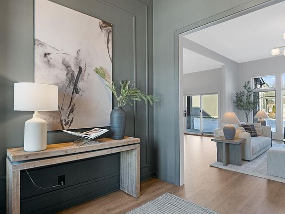 *Last Open house prior to sale is Sundays, 3/16 from 1 to 3* Introducing the Holland floor plan by Olive + Oak Custom Homes. The design of this 1.5 story home is one of intention, functionality, aesthetic and luxury finishings. Through a grand 8ft glass entry door, you’re welcomed into a foyer that sets the tone for the rest of this masterpiece, with custom picture frame wall treatment. The great room boasts 11 ft ceilings, floor to ceiling picture views, a cast fireplace, and built-in bookcases. A seamless transition to the adjoined dinette is ideal for making memories. The dinette features 10 ft ceilings, a built-in buffet and double Anderson sliding doors to a quiet covered patio. A front-facing picture window draws your eye to the kitchen, where you’ll find custom painted maple cabinetry, quartz countertops, ceramic tile backsplash with under cabinet outlets and accent lighting, a functional island, and integrated walk-in pantry with coffee/appliance bar. The main floor is a split-bedroom concept, with the primary bedroom on one side, and 3 bedrooms with 2 full bathrooms on the other. The primary offers a cathedral ceiling with stained beams, a custom tiled shower with product ledge and bench, a dual sink vanity with tower cabinets for tool storage, and a generous walk-in closet with an enclosed passthrough to the laundry room. A second main level bedroom with en suite bathroom is a versatile space, perfect for overnight guests, a second suite, office or cozy sitting room. Finishes include locally crafted built-in storage, a window bench seat, stained wooden beams, and full bathroom with a walk-in shower. The second floor offers a sizable 23x14 bonus room with reading nook, wet bar with suspended shelving, a full bathroom, storage closet and floored walk-out attic. Expectations will be met with high-end finishes through this home, including laminate planking in the main living spaces, all solid surface countertops on the main level, solid wood doors, enjoy endless hot water with a tankless gas water heater, and dual zoned HVAC ensuring consistent and comfortable temperature on both floors. All interior and exterior design is the work of established home designer Hygge Line Design, exclusive to Olive + Oak Custom Homes. If you are looking for a one-of-a-kind luxury home, crafted with care and precision, this is the home for you.