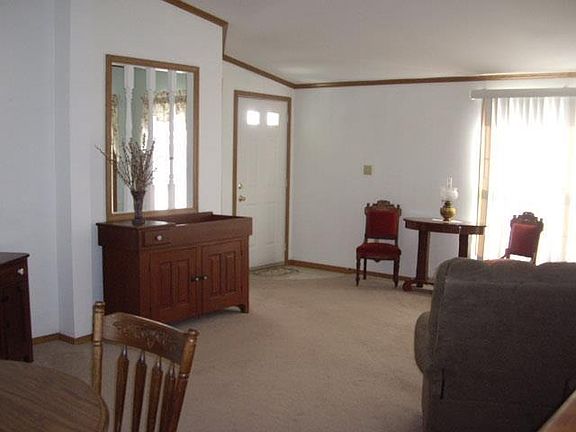 Well maintained double wide with over 300 s.f. covered porch. Newer carpet in the living room hall and dining room. Walk in closet in both bedrooms. Shed and small fenced yard area for pet. Large kitchen with lots of work space. Laundry room with washer and dryer and a wash sink. Beautiful landscaping. This is a great place to call home.